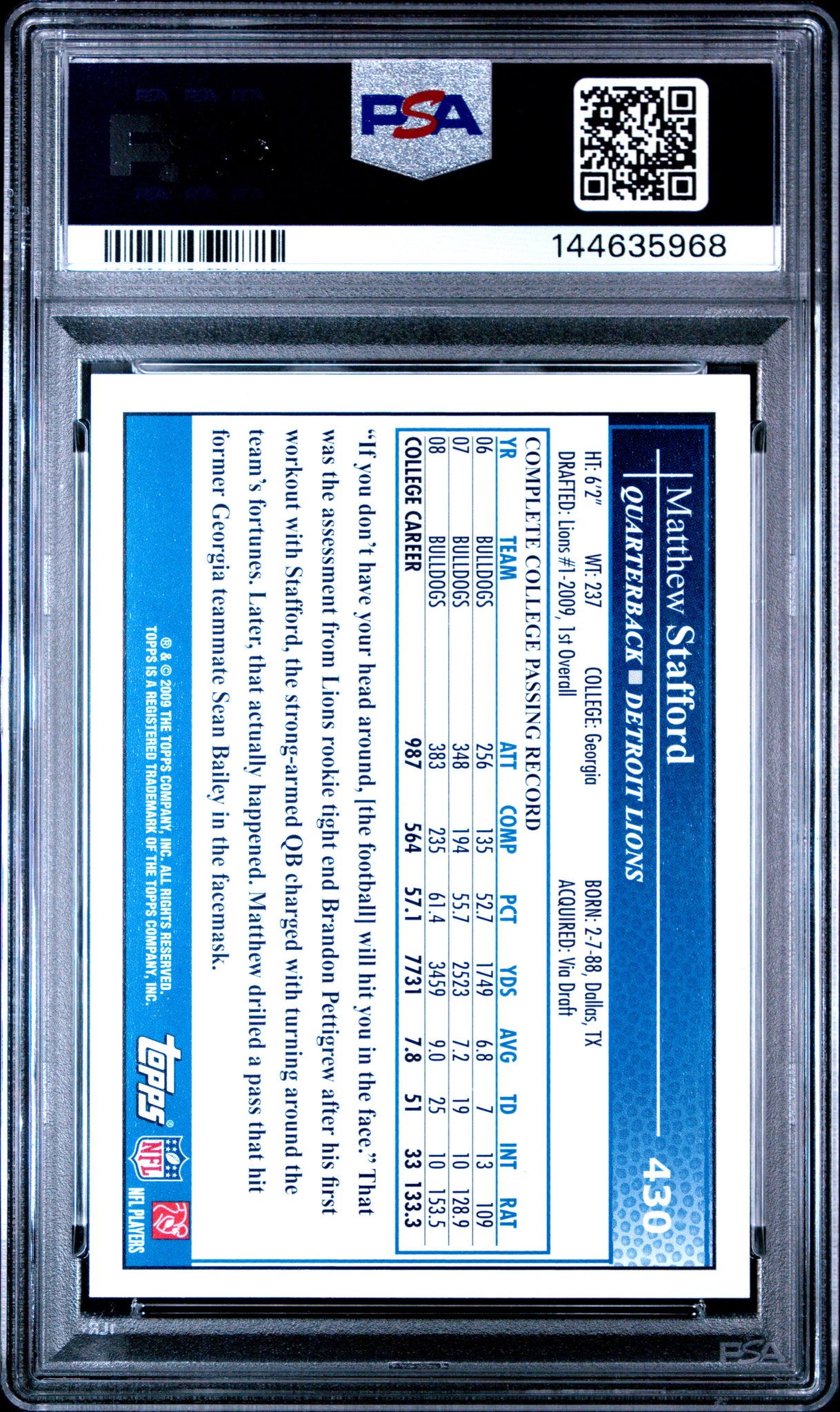 Matthew Stafford 2009 Topps #430 PSA 10