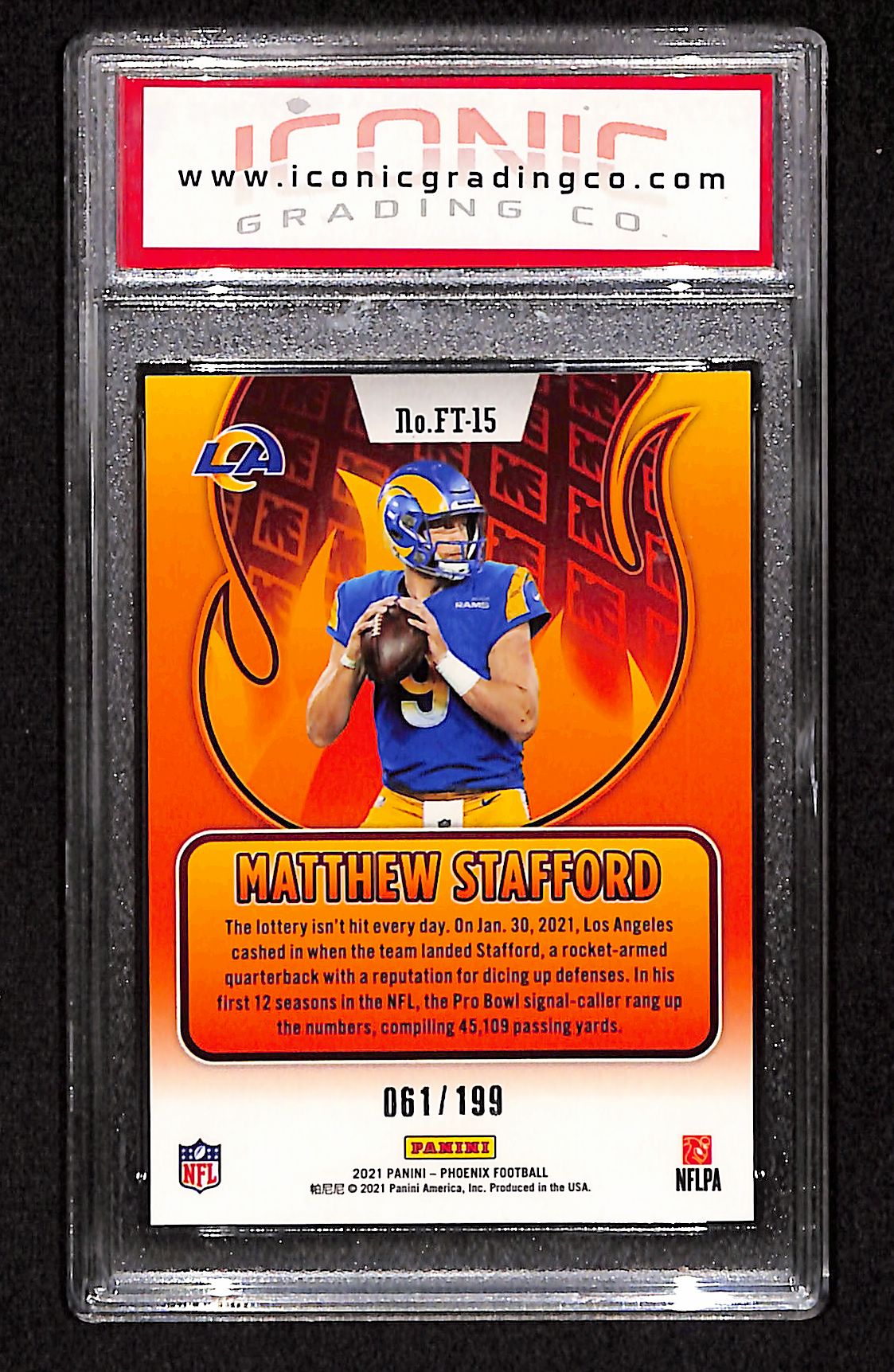 Matthew Stafford 2021 Panini Phoenix Flame Throwers Red #FT-15 #/199 Other 10