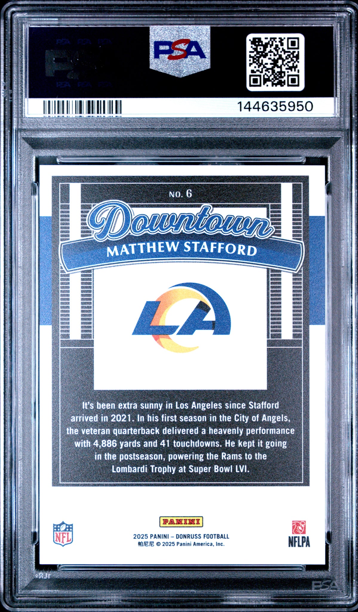 Matthew Stafford 2025 Donruss Downtown! #6 PSA 10