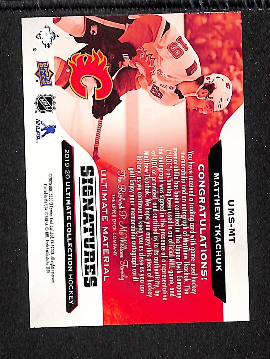 Matthew Tkachuk 2019-20 UD Ultimate Collection Material Signatures #UMS-MT #/99
