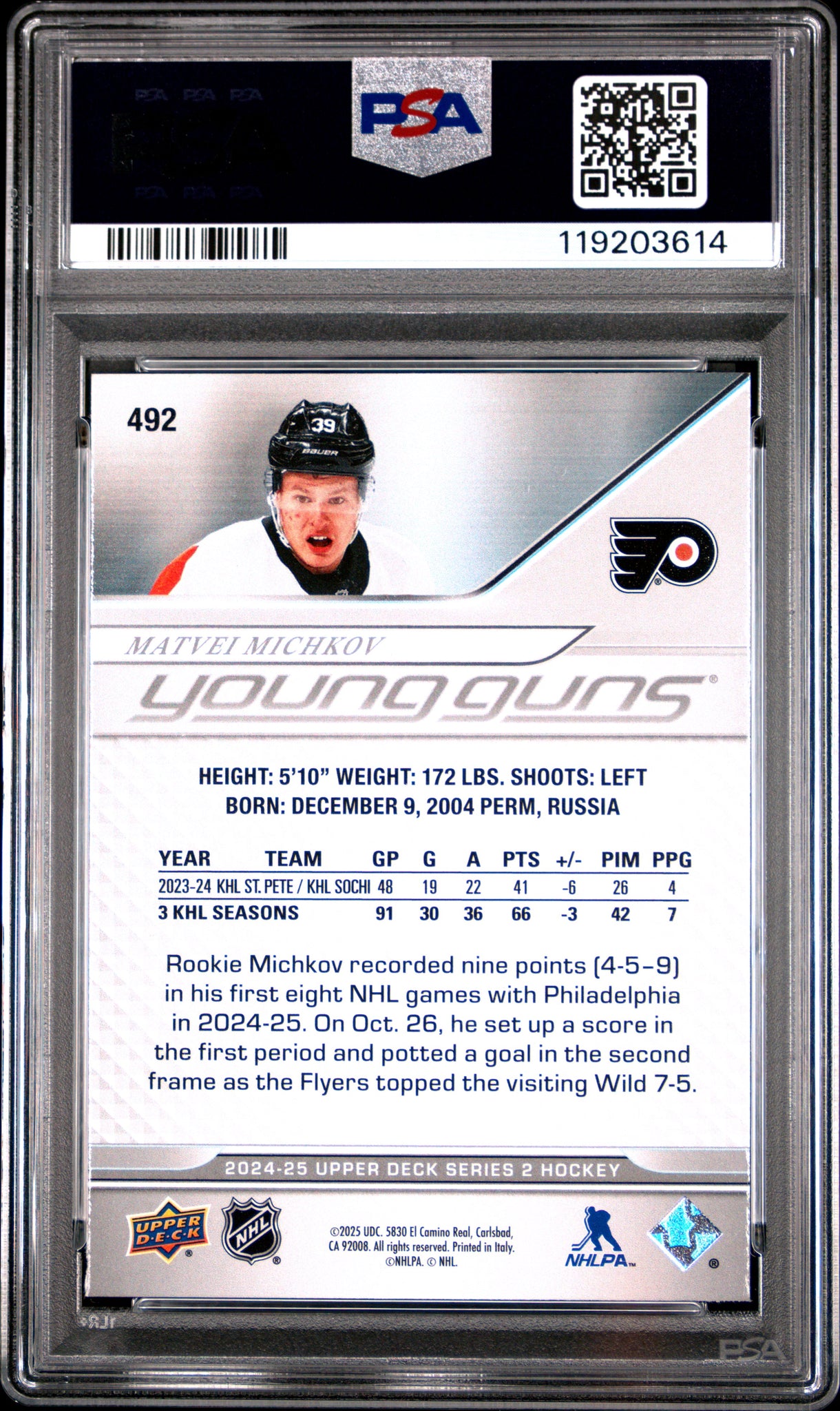Matvei Michkov 2024 Upper Deck #492 PSA 9