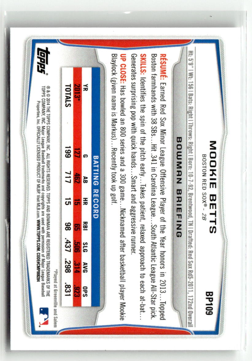 Mookie Betts 2014 Topps Bowman Prospects #BP109