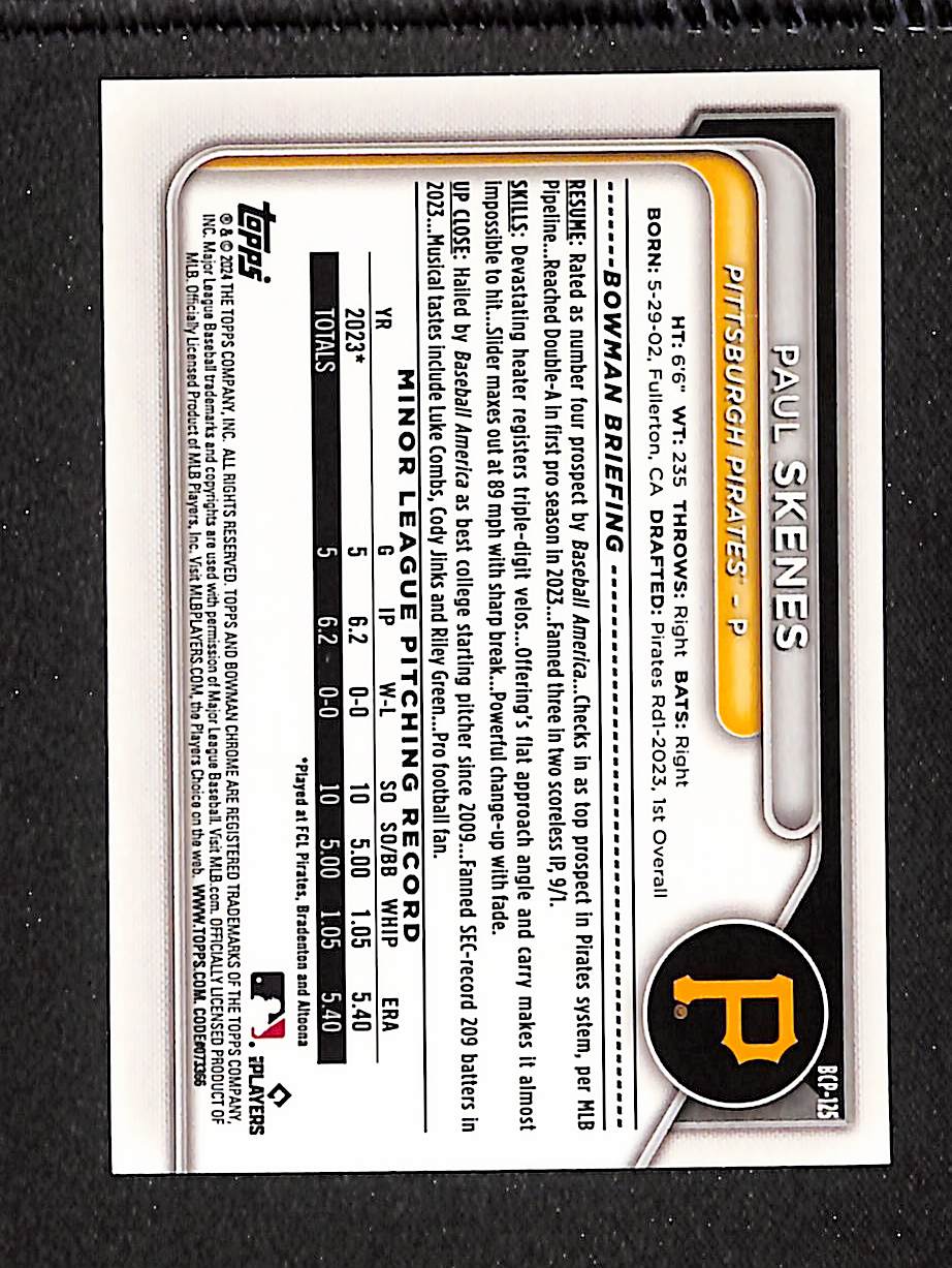 Paul Skenes 2024 Bowman Chrome Prospects Mojo Refractors #BCP-125