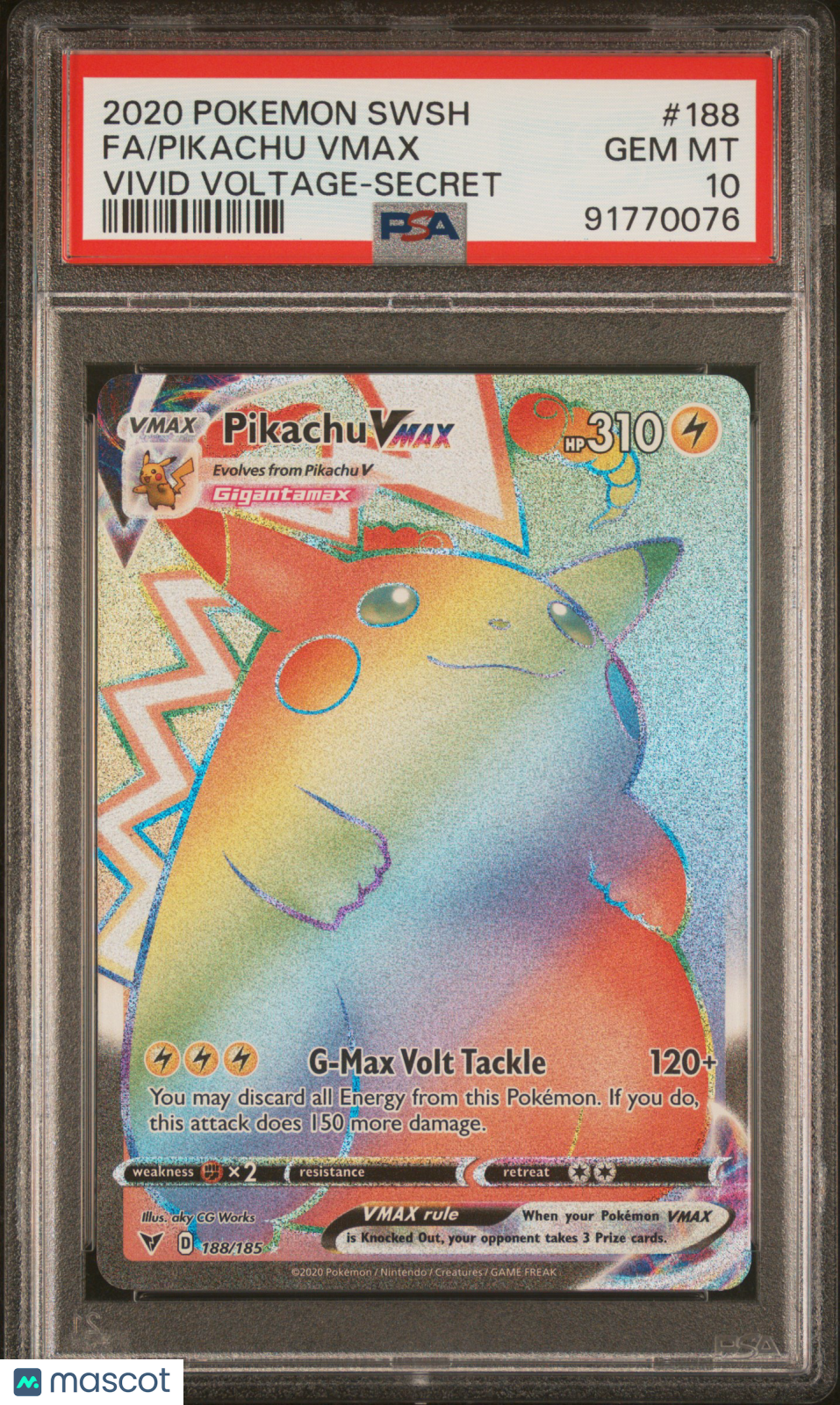 Pikachu VMAX 2020 Sword & Shield Vivid Voltage #188 Vivid Voltage-Secret PSA 10