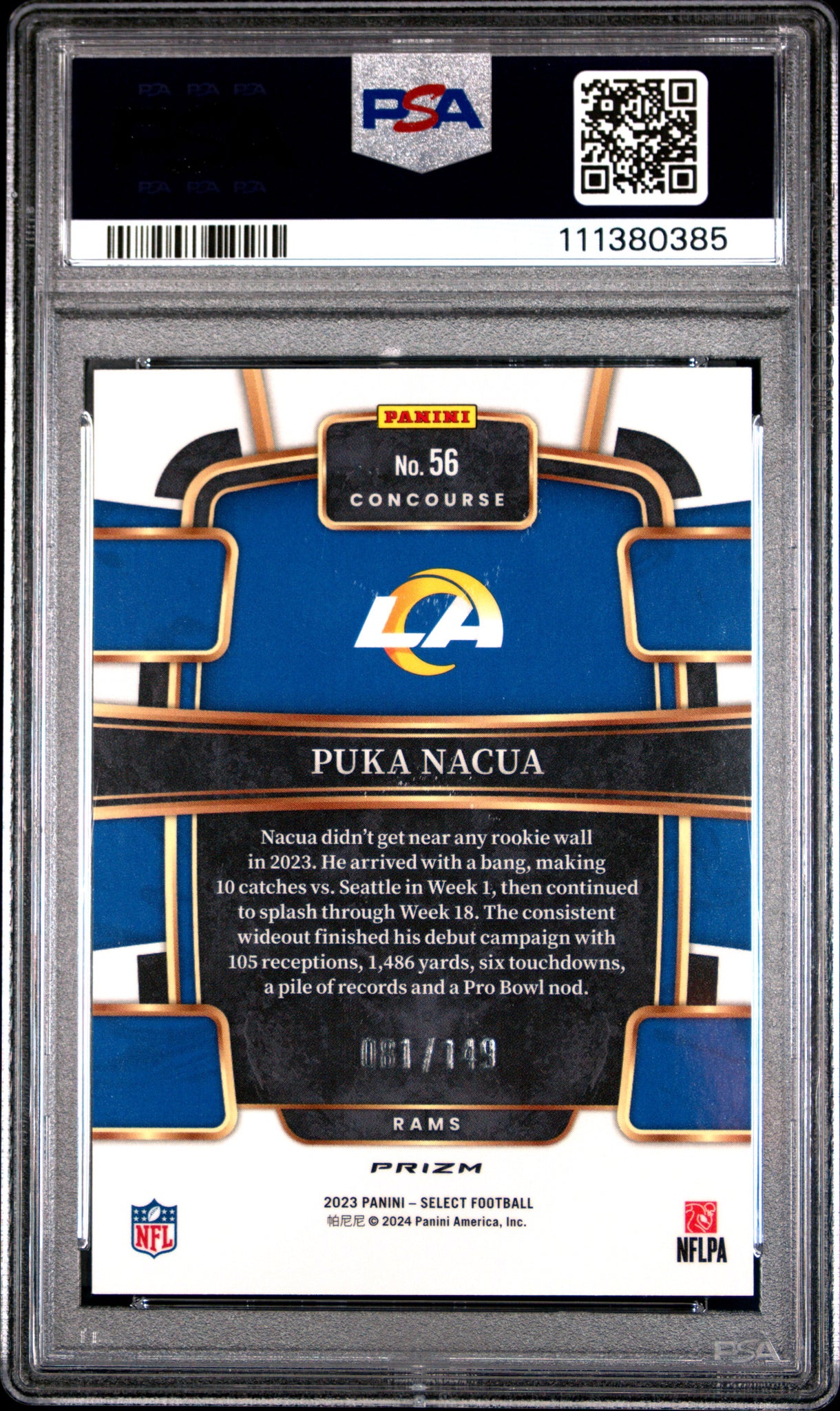Puka Nacua 2023 Panini Select Maroon Prizm #56 /149 PSA 10