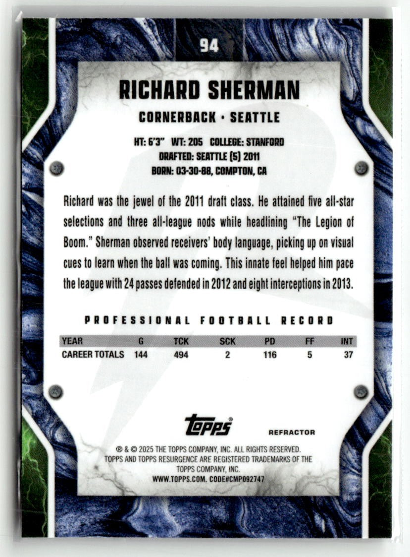 Richard Sherman 2024 Topps Resurgence Refractor #94