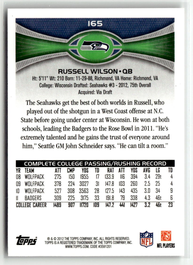 • Load image into Gallery viewer, Russell Wilson 2012 Topps Football #165 RC