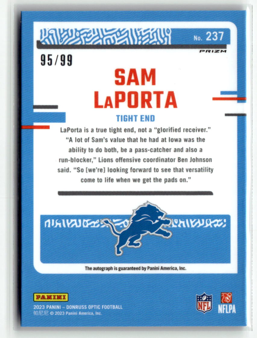 Sam LaPorta 2023 Panini Donruss Optic Football Blue Autographs #237 95/99