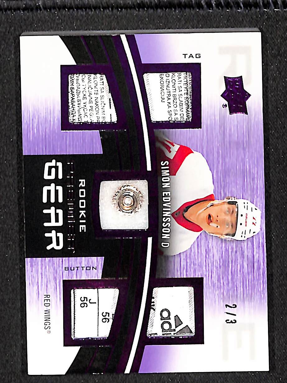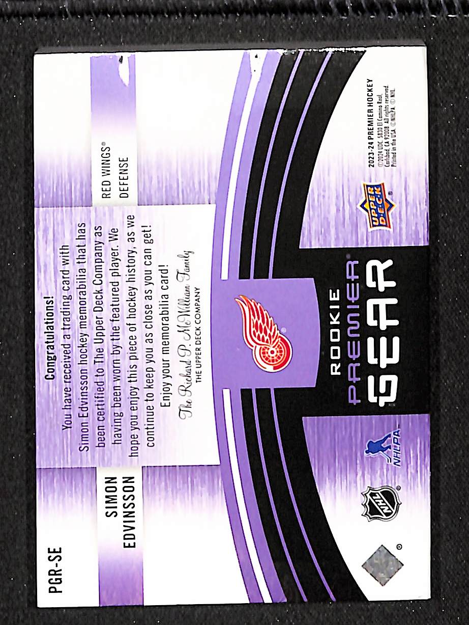 Simon Edvinsson 2023-24 Upper Deck Premier Gear Rookies Button & Tag #PGR-SE #/3