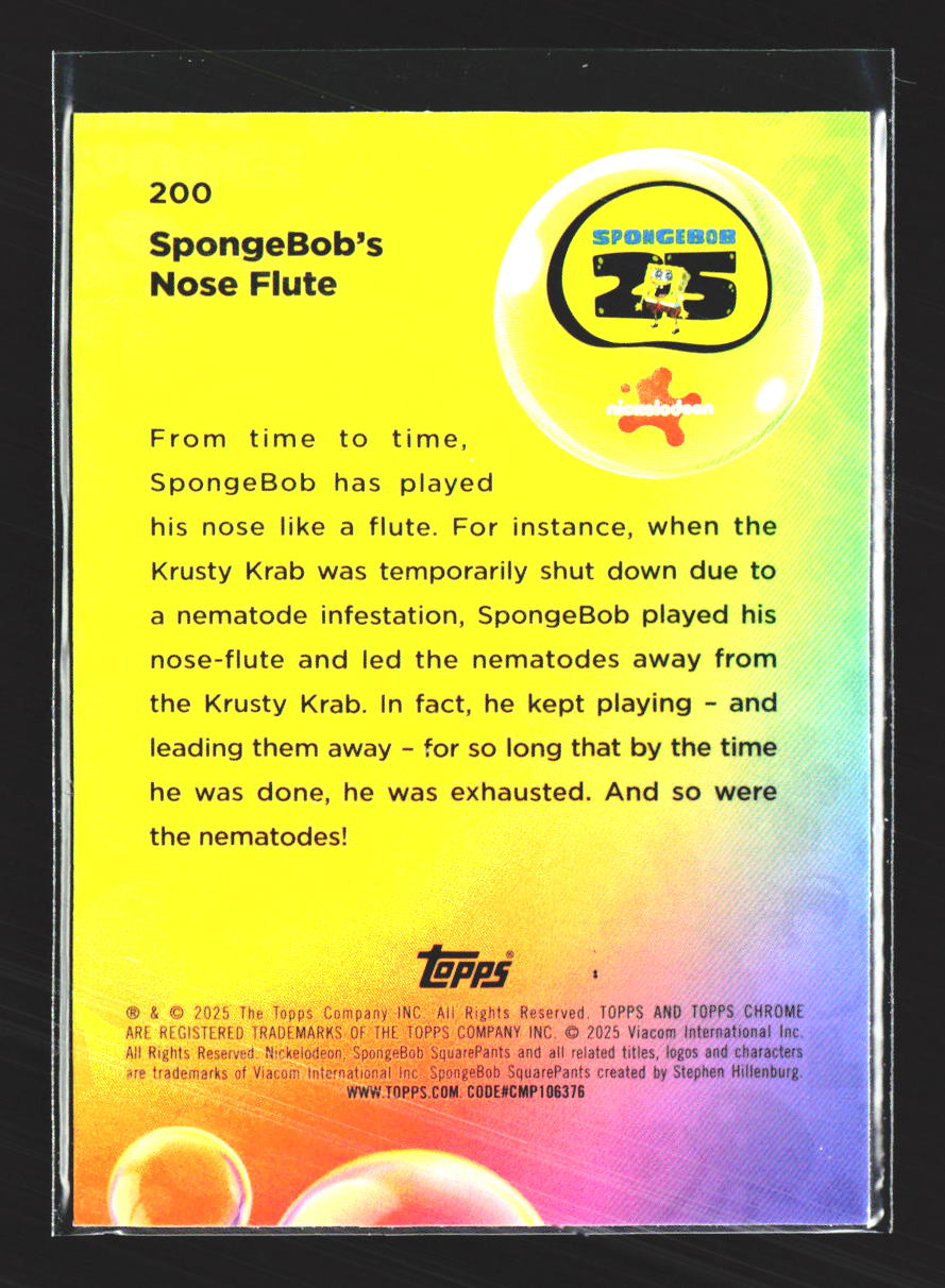 SpongeBob's Nose Flute 2025 Topps Chrome SpongeBob /199 Refractor #200