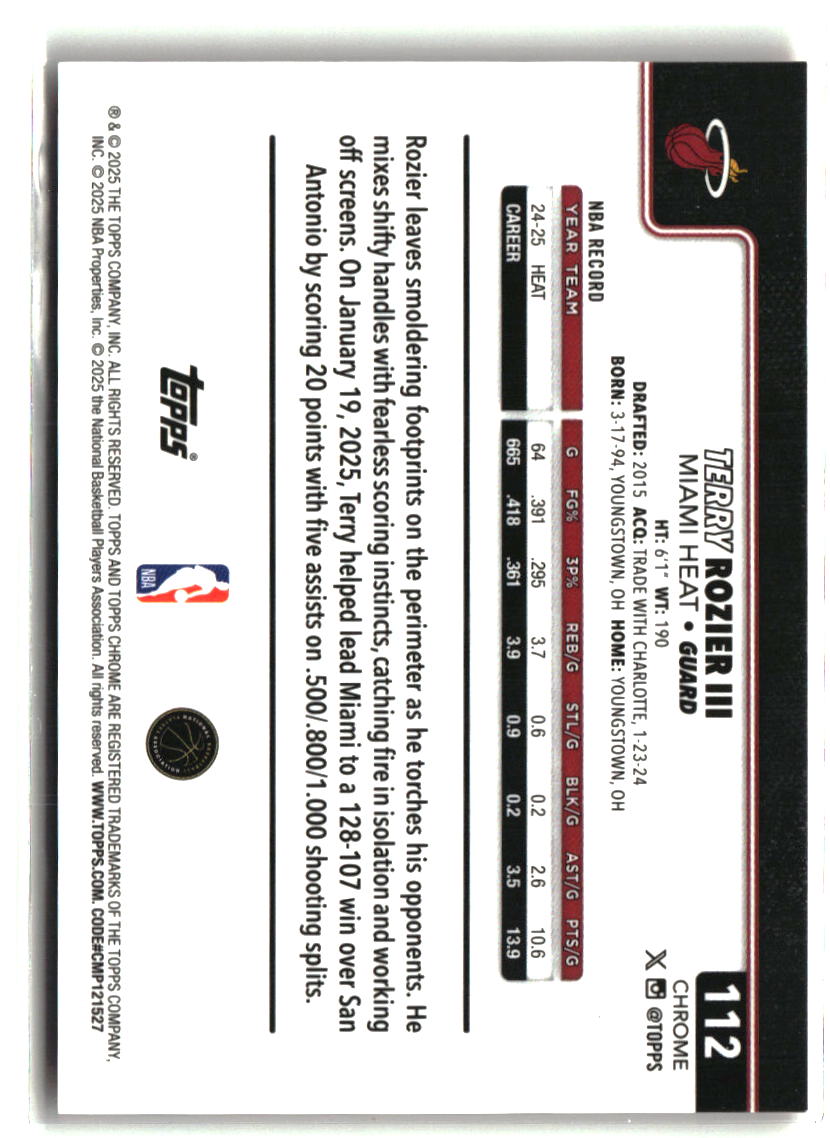 Terry Rozier III 2025-26 Topps Chrome Orange Refractor #112 #/25