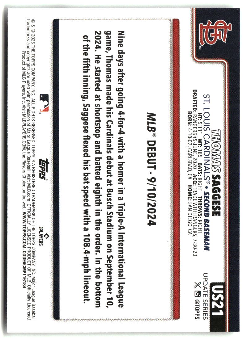 • Load image into Gallery viewer, Thomas Saggese 2025 Topps Update #US21