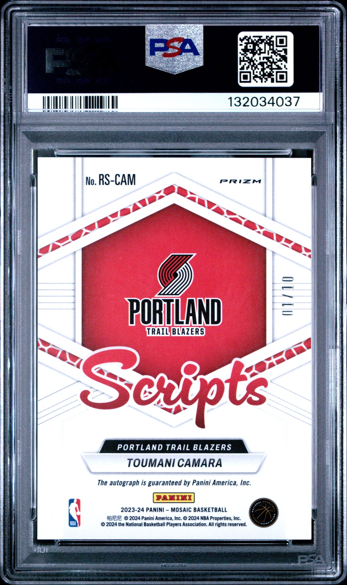 Toumani Camara 2023 Panini Mosaic Rookie Scripts Gold #RS-CAM /10 PSA 10