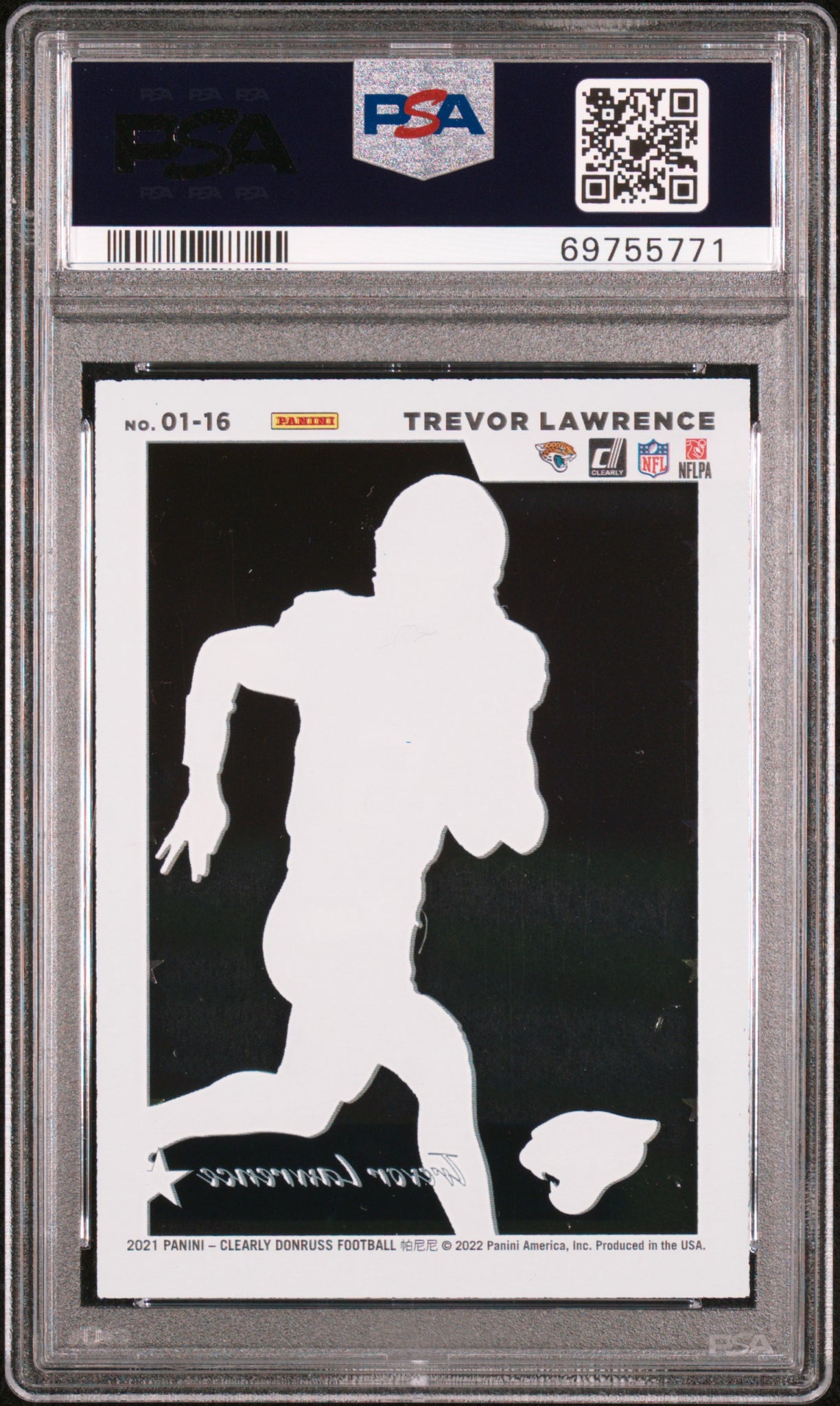 • Load image into Gallery viewer, Trevor Lawrence 2021 Panini Clearly Donruss Retro 2001 #01-16 PSA 9
