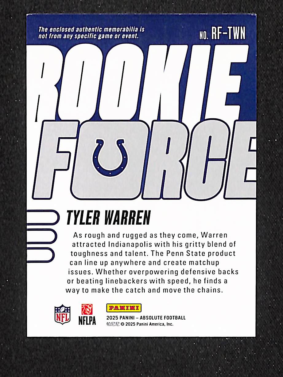 Tyler Warren 2025 Panini Absolute Football Rookie Force #RF-TWN RC Memorabilia