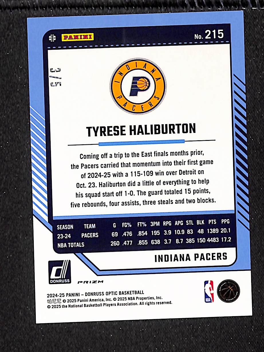 Tyrese Haliburton 2024-25 Donruss Optic Green #215 #/5