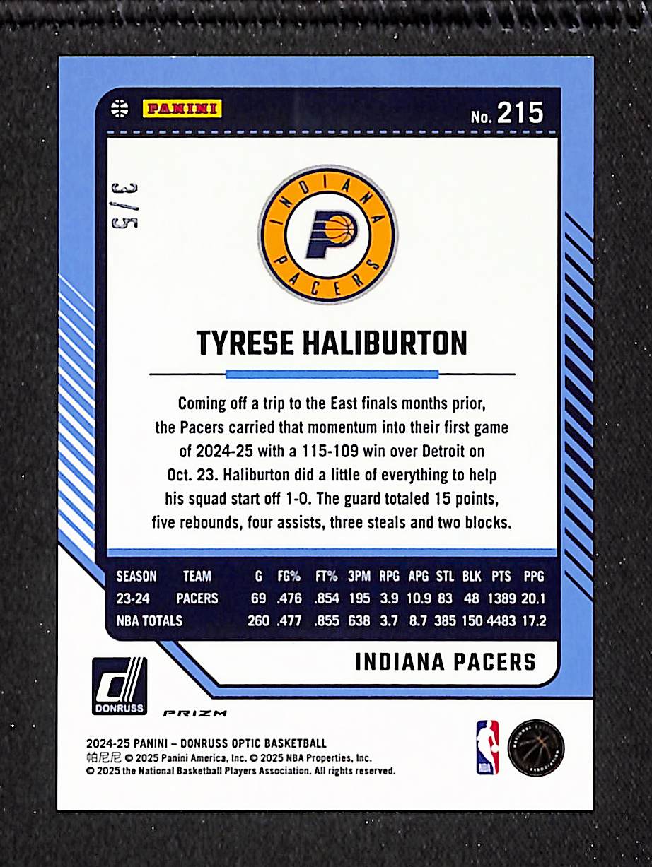 Tyrese Haliburton 2024-25 Panini Donruss Optic Green #215 /5