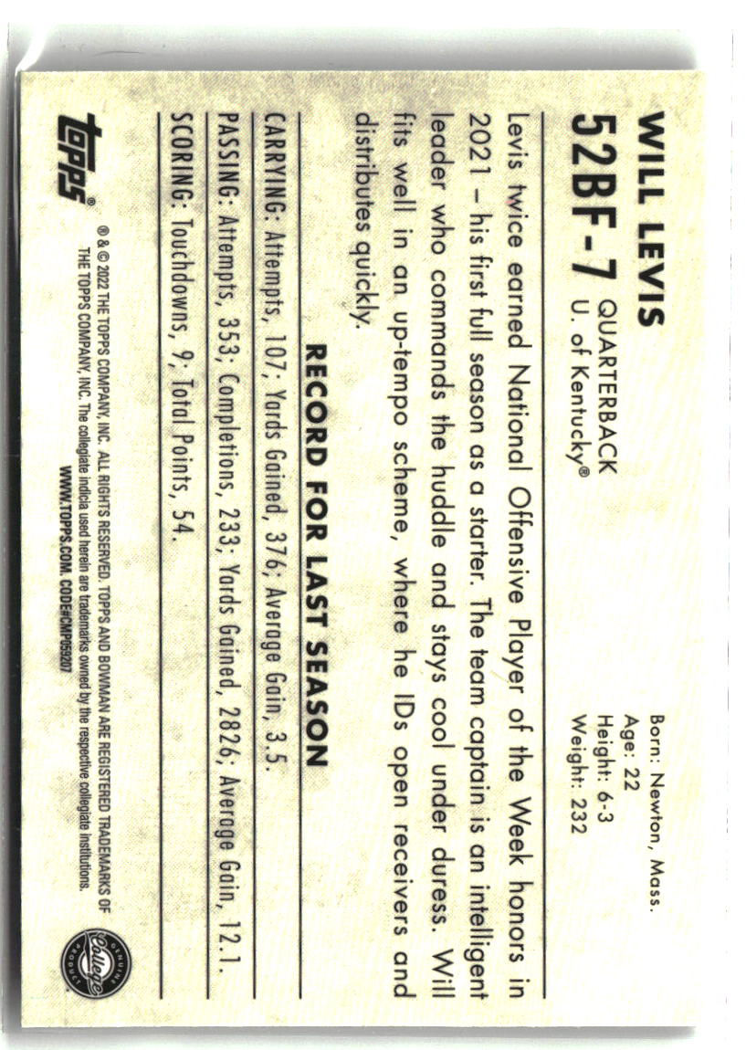 Will Levis 2022 Bowman University Chrome 1952 Bowman #52BF-7