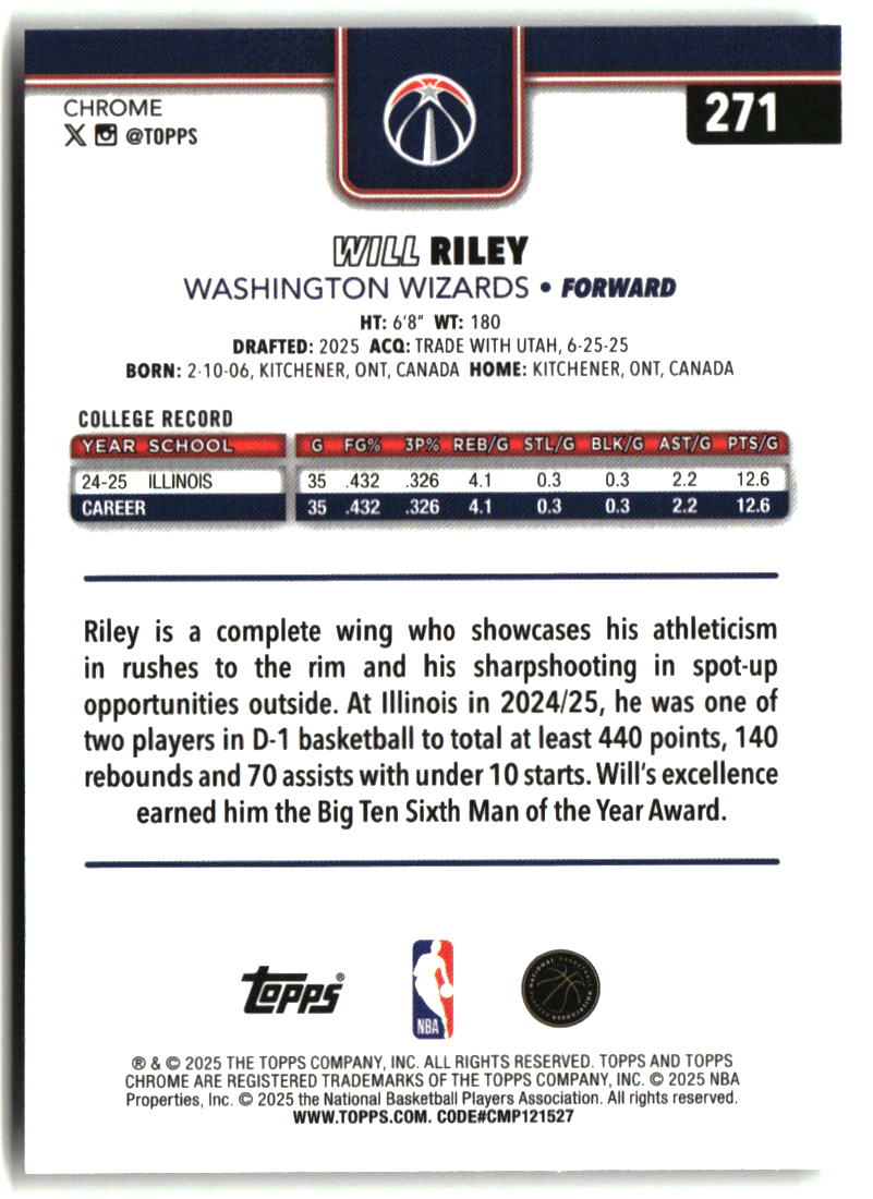 Will Riley 2025-26 Topps Chrome #271