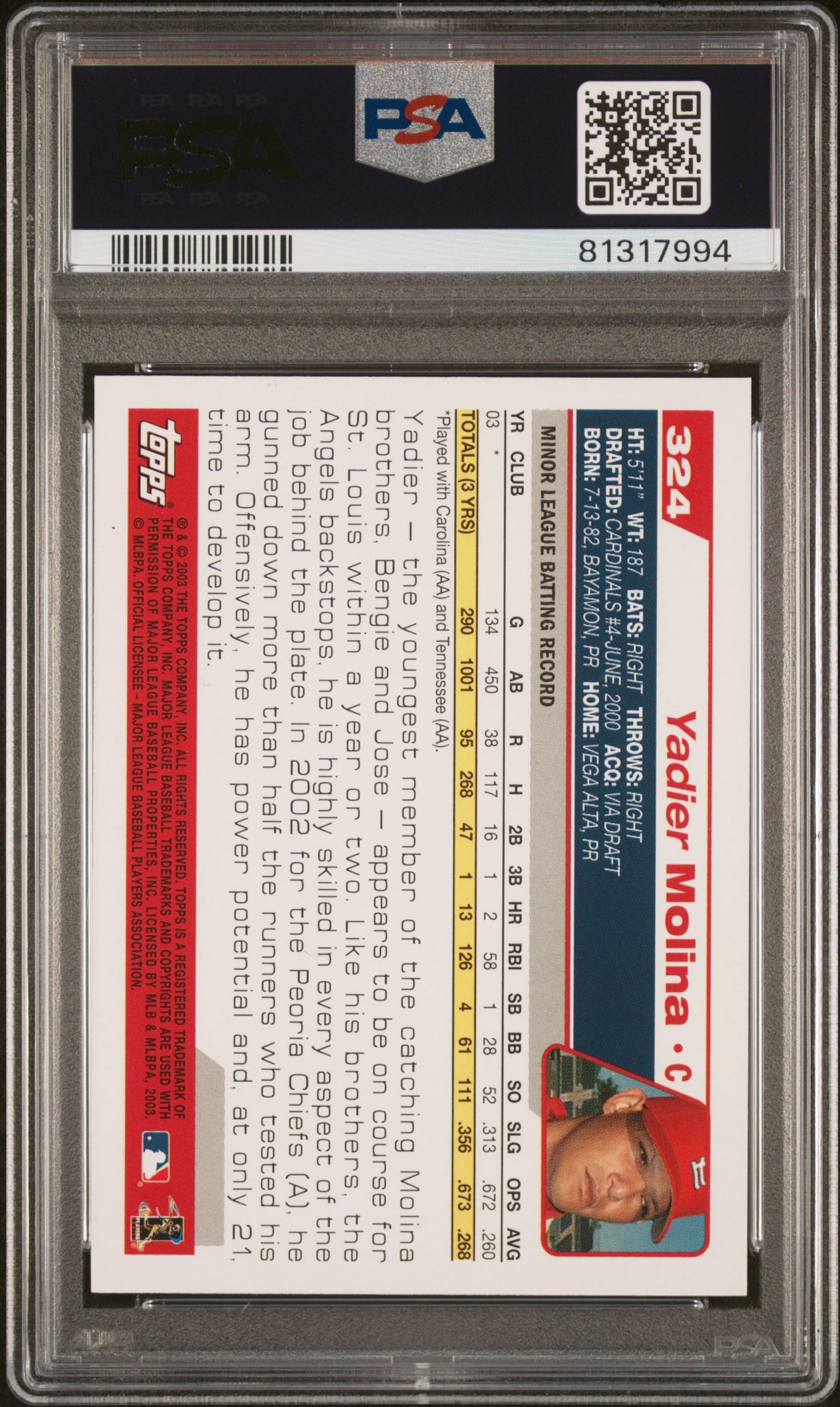 • Load image into Gallery viewer, Yadier Molina 2004 Topps #324 PSA 9