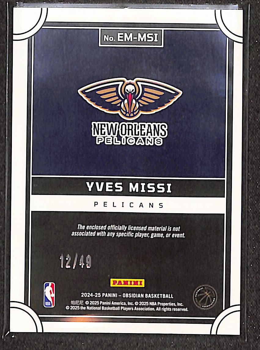 Yves Missi 2025 Panini Obsidian Eclipse Pink #EM-MSI /49 RC