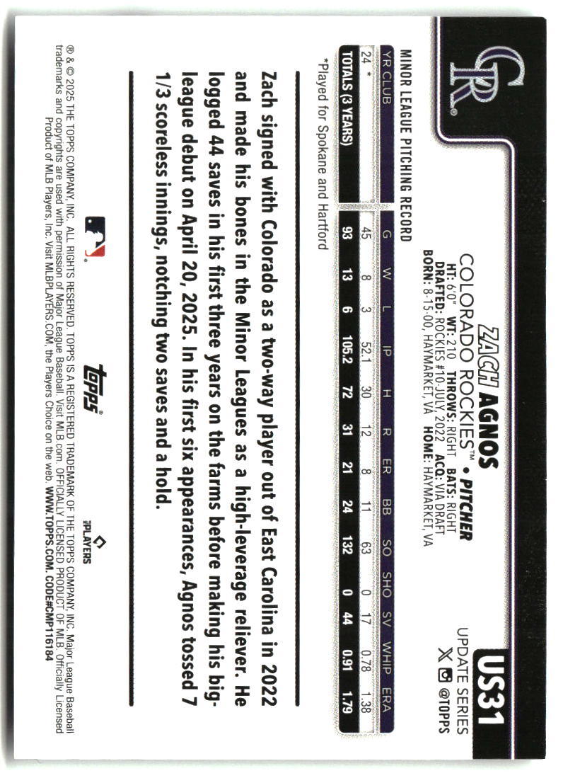 • Load image into Gallery viewer, Zach Agnos 2025 Topps Update #US31