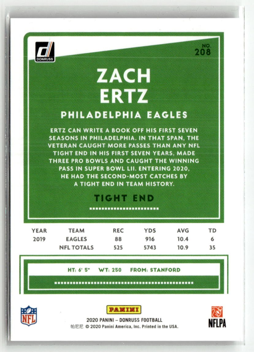 Zach Ertz 2020 Donruss Press Proof Silver #208 #/100
